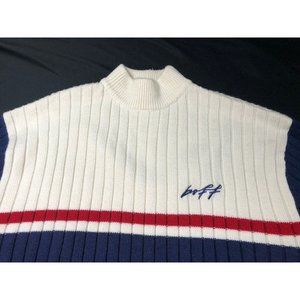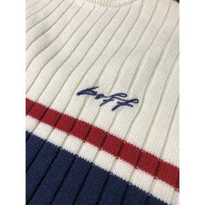 Boff Mens Blue Navy Red Striped Sweater Size 2XL Korean Knit Logo Embroidered.