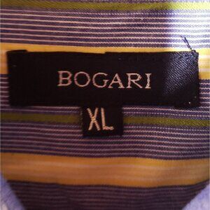 Bogari men’s yellow blue striped long sleeve button down shirt XL. Gently used condition. Measurements are: 24” sleeve, 30” from shoulder to hem, and 25” from armpit to armpit.