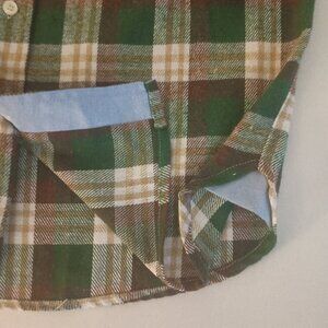 Bogari Men’s Green Brown Tan Off-White Plaid Flannel Button Shirt NWOT Size XL