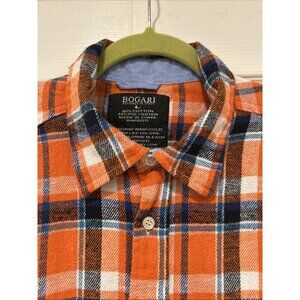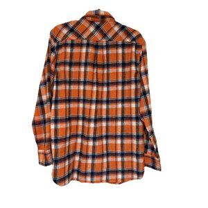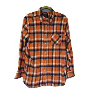 Bogari Mens Shirt Large Orange Plaid Flannel Button Up Long Sleeves Grunge 90s
