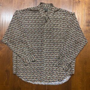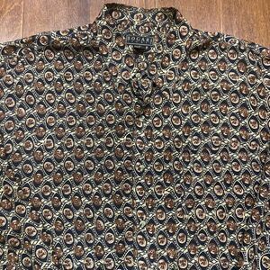 Bogari Studio Vintage AOP Casual Brown Tan Silk Button Front Shirt Men's Size XL