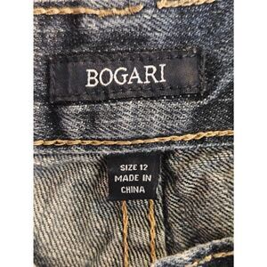 the inseam is 29.5 inches and the leg width is 9 inches. Ramie/cotton blend. Very good condition.