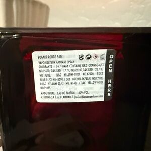 Elegant Bogart Rouge 540 perfume with a deep red bottle and gold accents. Perfect for a luxurious scent experience.