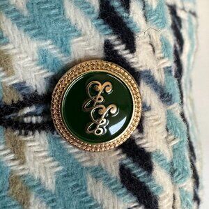 The Weekend Jacket from the Bogey Boys Holiday 2023 Collection is constructed in 10% Wool, 90% Polyester blue, ivory, black, sage green tweed houndstooth fabric wit 100% Polyester fabric lining. It features a spread collar, gold tone metal button/zipper front closure w gold tone logo embossed zipper pull, front slant welt pockets, long sleeves, gold tone metal w/ green enamel logo button cuffs, interior houndstooth trimmed pocket, elasticated waistband and a relaxed bomber jacket silhouette. This is classic w/ a twist, golf, sporty, streetwear, relaxed, going out, office casual, work parties/events,meetings, transitional seasons, timeless vibes.