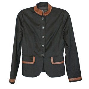 Bogner Black Angora Blend Military Style Blazer with Leather Trim - Size 6
