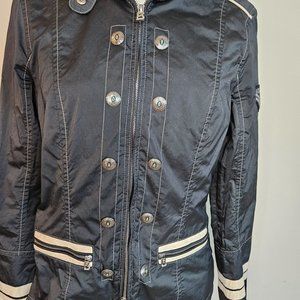 Stylish Bogner jacket. Features double-breasted design. Accented with white stripes. Perfect for any occasion.