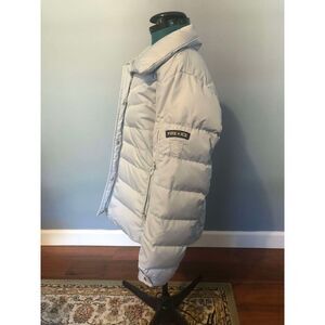 Stay warm in style with this Bogner Fire + Ice Saelly down jacket, featuring a lightweight yet ultra-warm quilted design in a gorgeous powder blue hue. Crafted with premium down insulation, this jacket offers exceptional warmth without bulk, making it perfect for skiing, snowboarding, winter travel, or everyday cold-weather wear. High-quality craftsmanship and sleek design make it a versatile outerwear piece you’ll reach for all season long. Details: • Brand: Bogner Fire + Ice • Style: Saelly Quilted Down Jacket / Coat • Size: Medium • Color: Powder Blue • Insulation: Premium Down • Features: Full zip front, high neck, lightweight quilted construction, wind-resistant, insulated warmth Style Keywords: ski jacket, snow jacket, après ski coat, lightweight down jacket, winter coat, alpine jacket, cold weather gear, outdoor adventure coat, luxury ski wear, puffer jacket, insulated winter coat, Bogner women’s jacket. Perfect for: ski trips, mountain getaways, winter commutes, and outdoor adventures. Bundle & Save — Ships Fast! It has some flaws as noted, including minor holes and marks - one being stitched up. You won't notice when you're skiing on the slopes. Detachable hood not included. Tags: winter, snow, skiing, snowboard, cold weather Chest: 20" Length: 26"