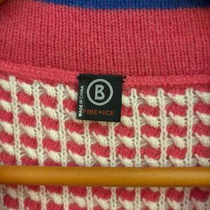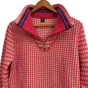 Bogner Fire & Ice New Wool Pink White and Blue Half Zip Knit Women's Sweater