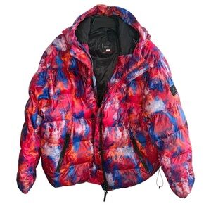 Size 14. Great used condition. One small flaw (stain) on sleeve as shown in photo 10, not noticeable with the print. Many pockets throughout. Soft down fill. Down Ski Jacket