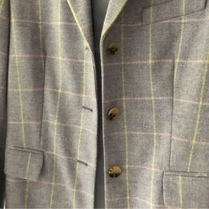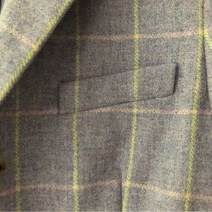 Lined. Purple with window pane plaid. Interior zip pocket. Front pockets.