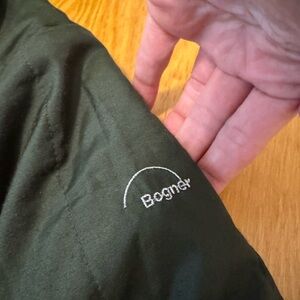 The Bogner One Piece Ski Suit for women in size 38 is a stylish and functional snowsuit in green with gold accents, perfect for winter sports like skiing. This vintage reversible suit features a stand-up collar, zip closure, and embroidered logo details, all made from a blended fabric with polyester insulation for warmth. Designed by the renowned brand Bogner in Germany, this long-sleeve jacket offers a regular fit and is a must-have for any avid skier looking for both style and performance on the slopes.