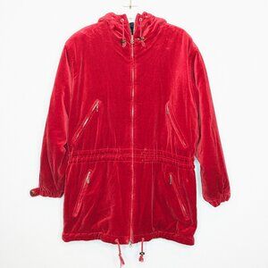 Bogner Red Velvet Long Sleeve Hooded Zip Up Jacket Pockets Embroidered Size 8