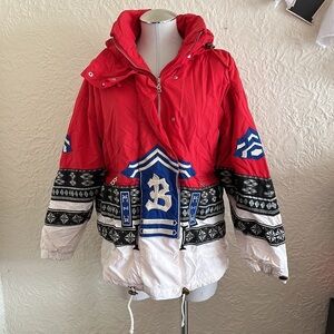 Bogner Ski Jacket Parka Red White Blue Embroidered Asian Vintage Coat 8