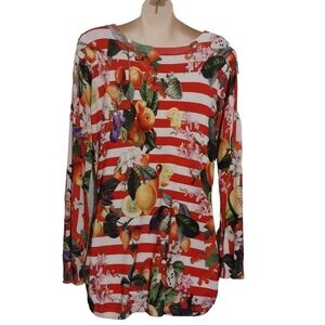 ✨Bogo FREE ✨ Boston Proper Striped Fruit Long Sleeve Sweater Top Sz M