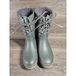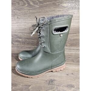Bogs Amanda Plush Lace Up Waterproof Winter Rain Boots Green Womens Size 6
