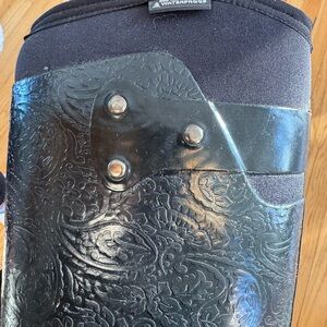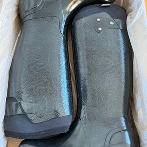 Stylish black boots with embossed design. Ideal for rainy days and cold temperatures. Brand new never worn, smoke free home. Bought for $130