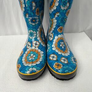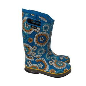 Bogs Boots Womens Size 8 Pansies Rainboots Waterproof Floral Blue Flowers
