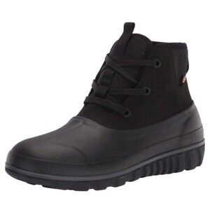 Step out in style with these black leather lace-up boots from Bogs. Perfect for a casual occasion, these boots come in size 10 (US) and are suitable for men. The boots feature a waterproof and water-resistant design, ensuring your feet stay dry and warm during the winter season. Crafted from high-quality leather, the boots are both durable and stylish. The midsole is made of EVA material, providing a comfortable fit. The boots also come with an antimicrobial feature, keeping your feet odor-free. With accents of lace, these boots are the perfect addition to any wardrobe. Get ready to take on the day in style with Bogs!