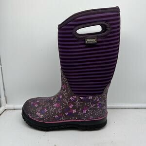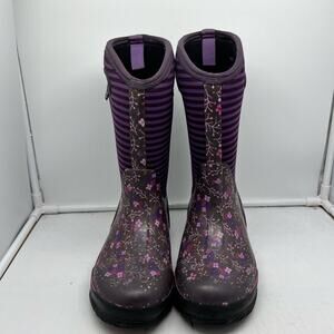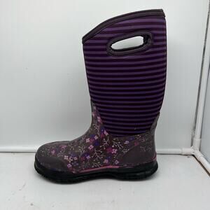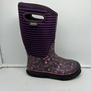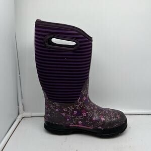 Bogs Classic Flower Boots Youth 3 Purple Waterproof Snow Rain Pull On Snow Kids