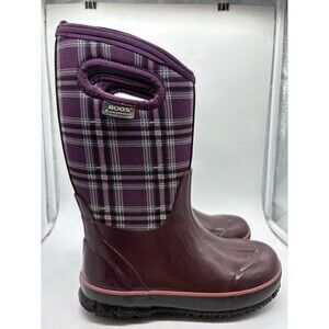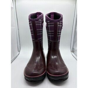 Bogs Classic Waterproof Winter Boots Purple Plaid Pull-On Youth Size 1 US