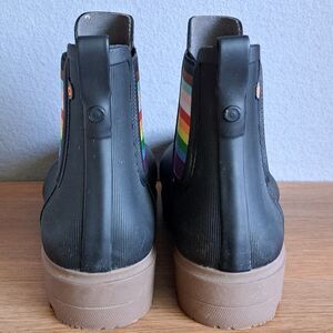 Bogs Holly Chelsea Womens 10 Black Rain Boots Waterproof Vegan Pride Flag 685