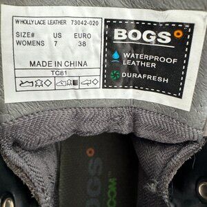 Bogs Holly Lace-up Waterproof Grey Leather Boots Hiking Women's Size 7 NWOT