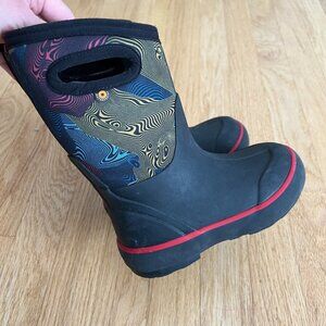 Bogs Kid's Classic II Warped Waterproof Winter Boots- Youth Size 11. Black/multicolor print, pull on style, insulated. In great condition.