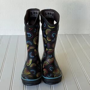 Bogs Kids size 10 Black Rainbow Rain Boots
