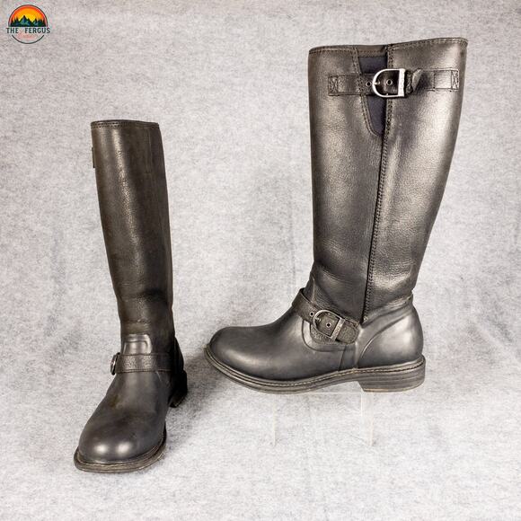 Bogs McKenna Rain Boots Black Leather Mid-Calf Waterproof Women's Size 9