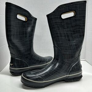 Bogs Rainboots Rubber Pull On Waterproof Boots Plaid Black Gray Women's Size 10