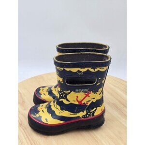 Pre-Owned Bogs Skippers II kids waterproof boots infants size 9. Flaws- some wear on bottom back soles- some dirt staining scratches on outsides see pictures above.