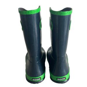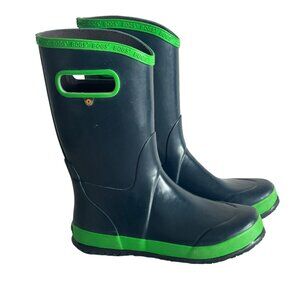 Bogs Solid Navy Green Rubber Rain Boots kids size 6 EU 39