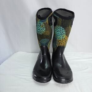 Bogs Women's North Hampton - Black Multi Color Rain Boots Size 10 Outdoor Garden