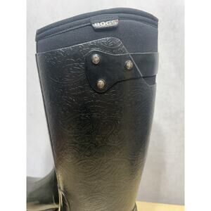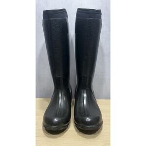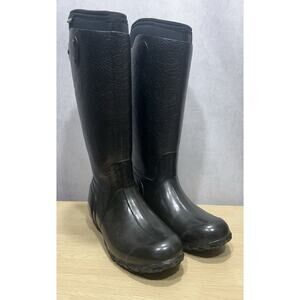 Bogs Womens Rider Emboss Size 9 Rain Boots Black Rubber Waterproof Pull On