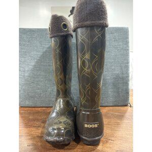 Bogs Womens Waterproof Printed Rain Boots Size 7 Green/Brown With Pattern