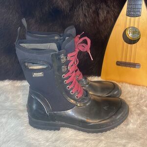Great pair of rubber boots with maroon laces & the tread has hardly any wear