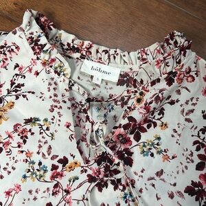 Boheme Kamryn Floral Short Sleeve Blouse Size Small Tie Neck EUC