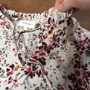 Boheme Kamryn Floral Short Sleeve Blouse Size Small Tie Neck