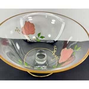 <!-- SEO Block: Bohemia Crystal, Hand Painted Roses, 24K Gold Trim, Mold Blown, Pedestal Compote Bowl -->