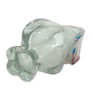 This beautiful vase from Bohemia, Czech Republic is a true work of art. The hand-blown glass in pink, blue, and brown creates an abstract design that is sure to add a touch of elegance to any room. The vase is perfect for displaying flowers or simply as a decorative piece. The art glass production technique adds to the uniqueness of this piece, making it a must-have for any collector.