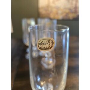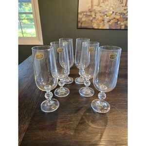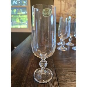 New with stickers. Discontinued item. Vintage Set of 6 Bohemia Claudia Crystal Champagne Flutes. Size 6 3/4 In tall and 1 7/8 In width. Absolutely stunning!