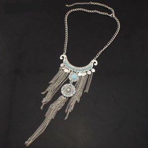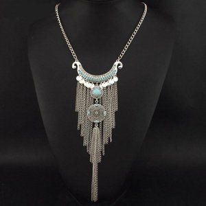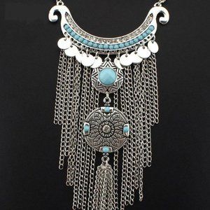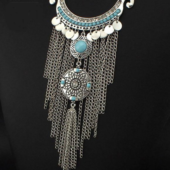 Two of the hottest trends at this year's Fall fashion were Bohemian style jewelery and statement piece necklaces. The bigger the better. This necklace has has both characteristics.