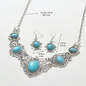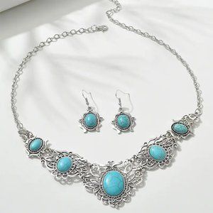 Bohemia Vintage Turquoise Necklace Earrings Jewelry Set Elegant Party Gift