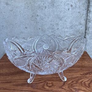 Bohemia Vintage Cut Crystal Scalloped Edge Footed Oval Bowl
