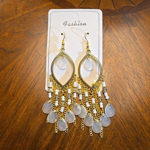 Bohemia Style White Long Beaded Waterdrop Dangle Earrings