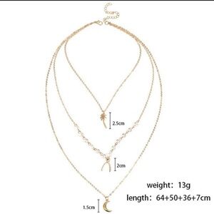 Bohemian 3 layer beaded charm dainty choker necklace. 3 lucky charms... wishbone, crescent moon and palm tree. Attached layers. Gold tones
