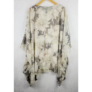 3X 26 28 Scarf Blouse Top Combo Whimsical Bohemian Beige Colorful Floral Tunic Top Peasant Casual
