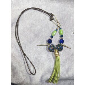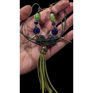 Elevate your style with this stunning Bohemian abstract statement necklace in vibrant blue and green hues. Perfect for any occasion, this unique piece adds a bold touch to your outfit. Handmade with care.