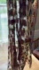 Bohemian style scarf with a patchwork design. Features shades of brown, coppery orange, and black. Has a slight burnout look