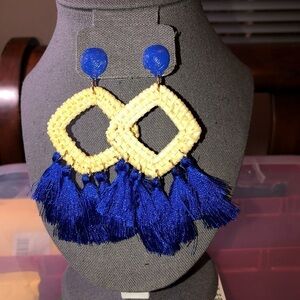 These earrings are woven from bamboo, and it takes work with different color double tassel.